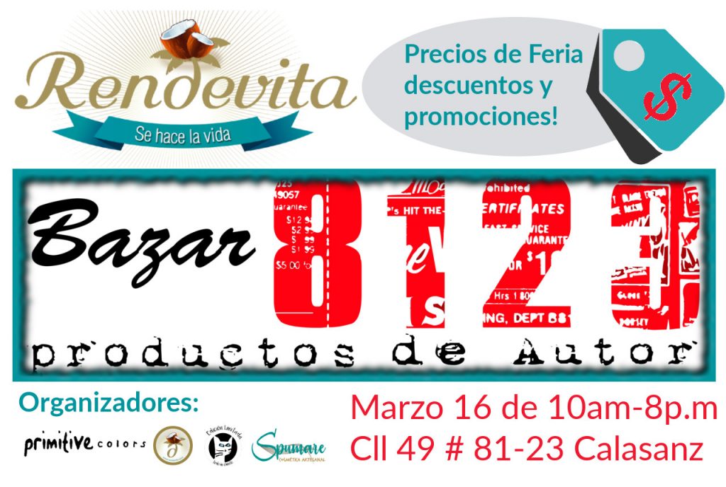 No se pierdan el Bazar8123 “Productos de Autor”, el sábado 16 de marzo en la Cll49 #81-23 (a 3 cuadras de la estación de metro La Floresta).